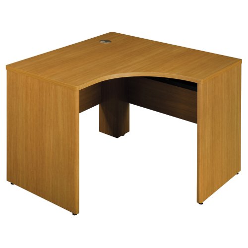 From a small office that relies on space efficiency to a multiple-employee work area to the CEO's high-powered suite, Bush Furniture's Quantum collection offers options to design the perfect configuration. This 47-inch left corner shell fills in valuable floor space with a sturdy foundation ready to be customized with a variety of amenities. Crafted of durable melamine with a warm Modern Cherry finish, it features a scratch- and stain-resistant Diamond Coat work surface and PVC edge banding to protect the desk from dents. There is also a desktop grommet and back panel cutouts for easy, inconspicuous wire management. Ready to add on? The shell accepts a CPU holder at the outside panels, an articulating keyboard in the center, and a monitor arm in the grommet. It can also be combined with Quantum's peninsulas, returns, and 47-inch hutches. Some assembly is required, though the shell comes with timesaving, install-ready features. Instructions and a toll-free customer help line are also included. The shell measures 47-3/8 inches wide by 42-1/8 inches deep by 30 inches high. Ten-year warranty. --Kara Karll
