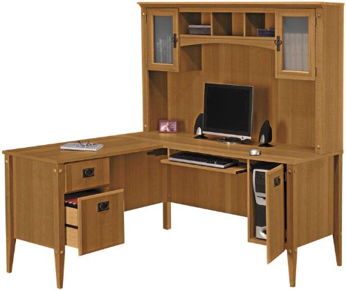 Bush Furniture Cabot L-Shape Computer Desk with Hutch in Espresso Oak Review