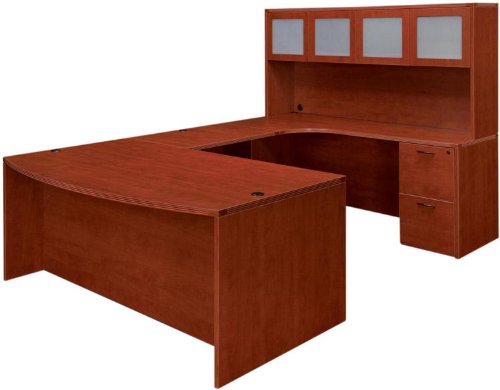 Bush Furniture Cabot 60" L-Shape Computer Desk in Espresso Oak (included quantity: 1) The Bush Cabot Collection 60" L-Desk is the perfect solution for people who need to stay plugged in but don't want their work space cluttered up with bundles of cables. The desk features a built-in 4-port USB hub, electronic charging station, and wire management system. Ample storage space is available, including a box drawer, a file drawer that can handle three file sizes, open storage, and a concealed storage space behind a stylish fluted glass door. The Cabot L-Desk is available in an Espresso Oak finish that complements any other piece in the Cabot Collection. Add an optional hutch to increase vertical storage and workspace. Features: L-shaped computer desk Espresso Oak finish Integrated 4-port USB hub Technology charging station Concealed storage with stylish fluted glass door Box drawer for supplies File drawer that accommodate letter-, legal, and AA-sized files Full-extension ball-bearing drawer slides Open storage space Specifications: Dimensions: 30.25" H x 59.5" W x 59.5" D Weight: 143 lbs Manufacturer 1 year warranty Bush Furniture Cabot 60" Hutch in Espresso Oak (included quantity: 1) The Bush Cabot Collection 60" Hutch adds additional storage space to the Cabot Collection 60" L-Desk or the 60" Corner Desk. Available in Espresso Oak finish, the Cabot Hutch offers simple, elegant styling with contemporary touches like flip-open doors on storage space, wire management system, and open work-in-process bays to keep you organized. Features: Fits Cabot Collection 60" desks Flip-open door on closed storage space Work-in-Progress trays to keep your desktop organized Espresso Oak finish Wire management system Specifications: Dimensions: 30.25" H x 31.5" W x 19.75" D Weight: 63 lbs Manufacturer 1 year warranty Read more...